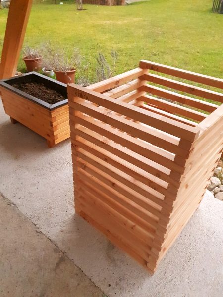 In contemporary gardening, compost bins are a mandatory part of equipment in  every garden or cultivariable area. Acquired compost is used as a additive for the soil improvement and as a fertilizer.