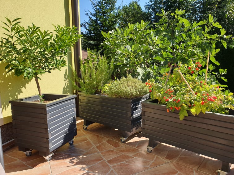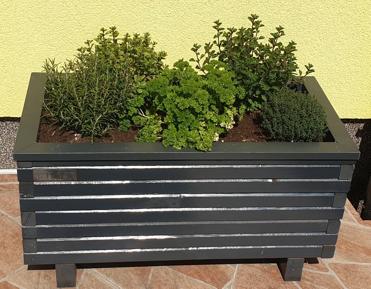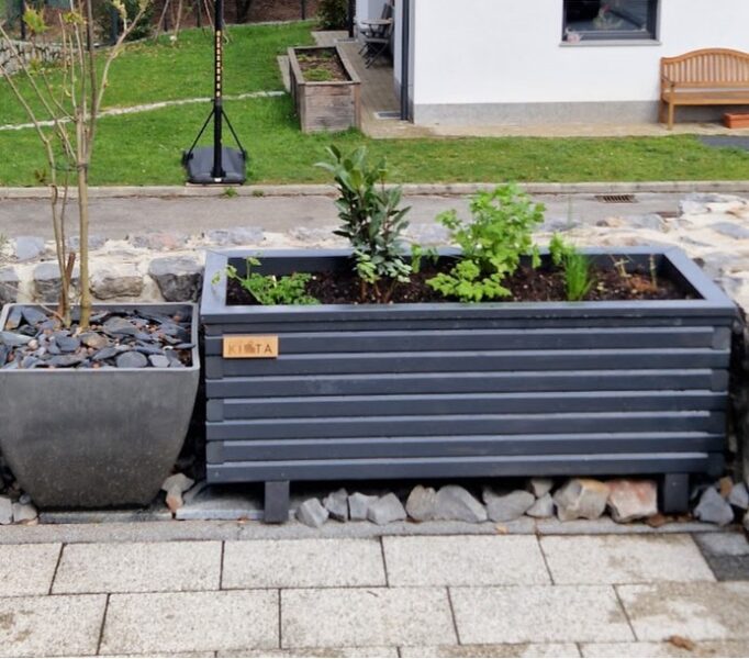 Moja kišta – anthracite classic is a modern portable raised garden, made from slovenian wood,distinguished with a big water tank. Even if you don’t have a garden, you can still enjoy your green oasis, al though on the balcony in the middle of the city.