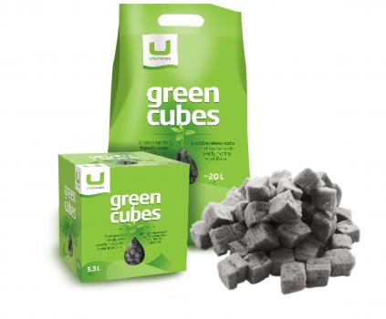 Zelene kocke so visoko učinkovito mineralno polnilo, oblikovano za zadrževanje in postopno sproščanje vlage v zemlji.