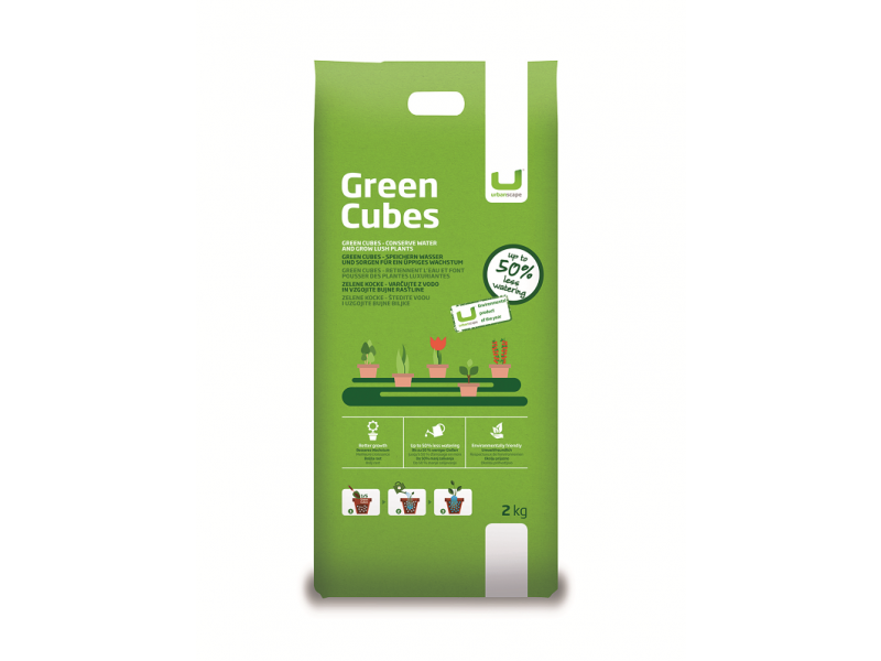 Vsaka kocka, ki bo našla svoje mesto v vašem koritu z rožami, zelenjavo ali začimbami, vam bo pomagala do lepših in bolj bujnih rastlin, saj Zelene kocke poleg uravnavanja vodnega režima skrbijo tudi za zračnost in toploto zemlje ter v njej ohranjajo mineralne snovi.
